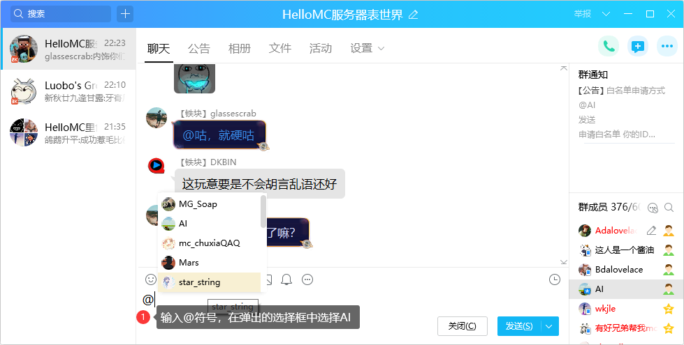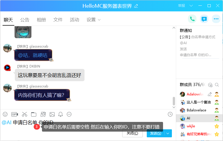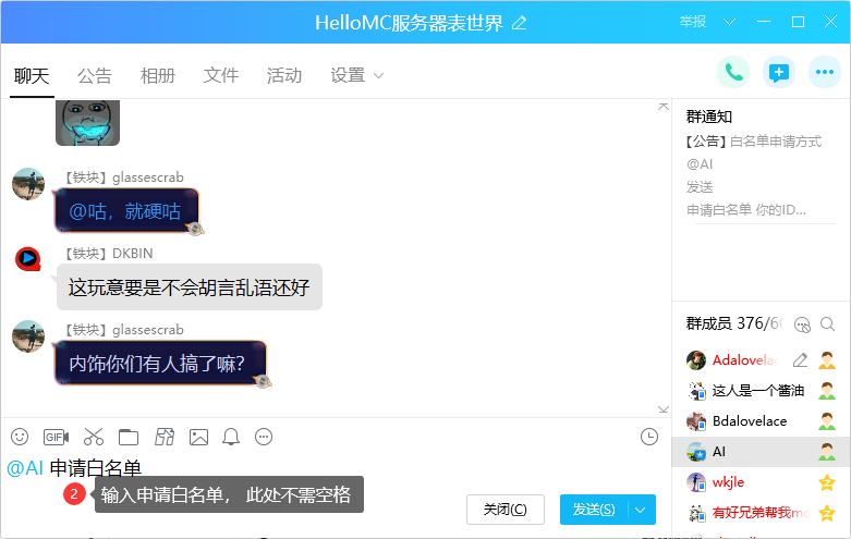 @需要输入@后选择AI,后跟申请白名单 空格 输入你的ID